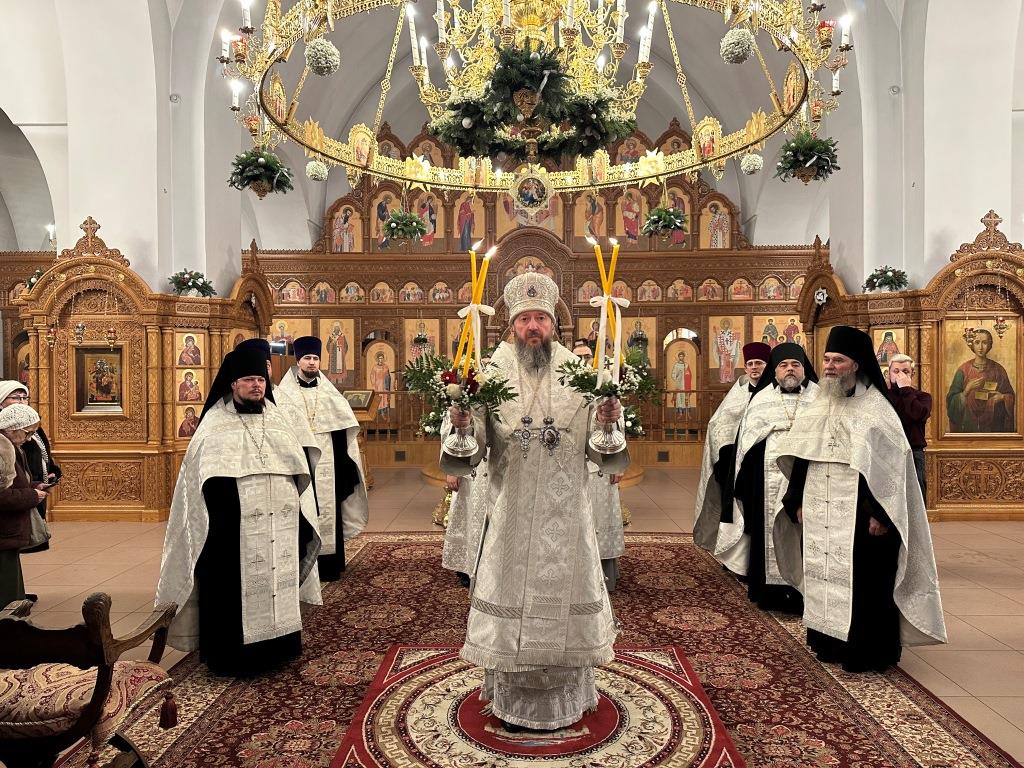 В рождественскую ночь в главном храме Восточного Казахстана, Андреевском кафедральном соборе города Усть-Каменогорска, Высокопреосвященнейший архиепископ Усть-Каменогорский и Семипалатинский Амфилохий возглавил служение Божественной Литургии святителя Иоанна Златоуста. Накануне в кафедральном соборе были совершены уставные богослужения Рождественского Сочельника и нáвечерия Рождества Христова. Перед началом ночной Божественной Литургии в соборе совершалась исповедь для желающих приобщиться Святых Христовых Таин в светлую рождественскую ночь.