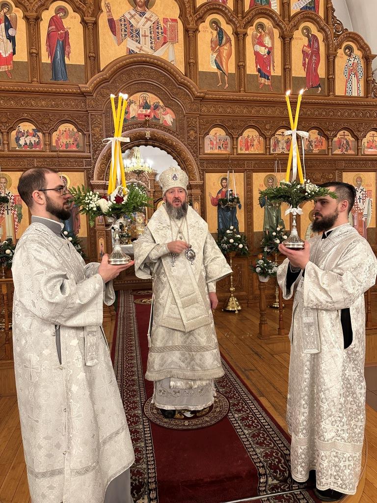 Праздничные богослужения возглавил Высокопреосвященнейший архиепископ Усть-Каменогорский и Семипалатинский Амфилохий. Архипастырю сослужили: ключарь кафедрального собора иеромонах Никодим (Авдеев), клирик собора иерей Роман Подрезов, секретарь епархии диакон Илия Кван, протодиакон Андрей Дудник, диакон Кирилл Рамазанов.