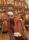 В завершение Богослужения Владыка архиепископ освятил пасхальную трапезу: крашеные яйца, пасхи и куличи.