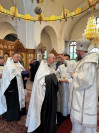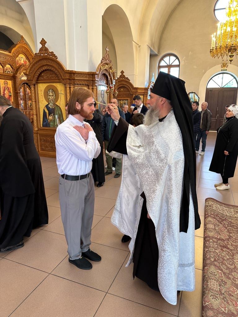 На полиелее возглашалось славление Господу Иисусу Христу; после чтения праздничного евангельского зачала архиепископ Амфилохий помазал клир и паству освященным елеем.