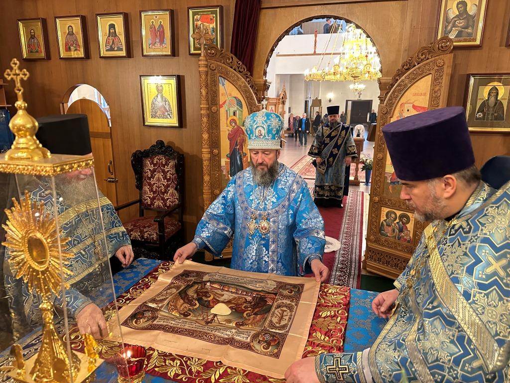 После заамвонной молитвы было совершено славление Пречистой Богородице перед Ее образом. Завершая богослужение, архиепископ Амфилохий поздравил народ Божий с праздником и произнёс слова святительского наставления.