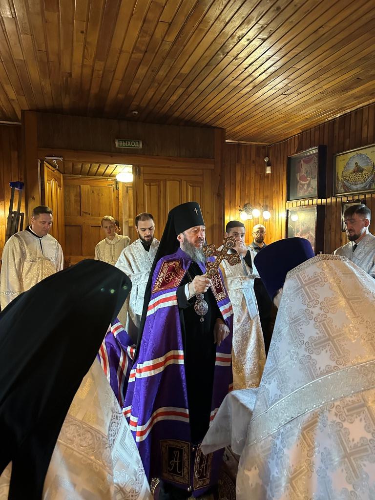Его Высокопреосвященству сослужили: благочинный Усть-Каменогорского церковного округа и настоятель Покровского собора иеромонах Силуан (Магилев), ключарь Покровского собора иерей Иоанн Толмачев, секретарь епархии диакон Илия Кван, протодиакон Андрей Дудник, протодиакон Александр Якушев, диакон Кирилл Нарушин.