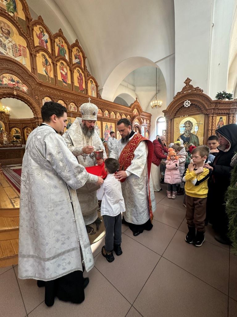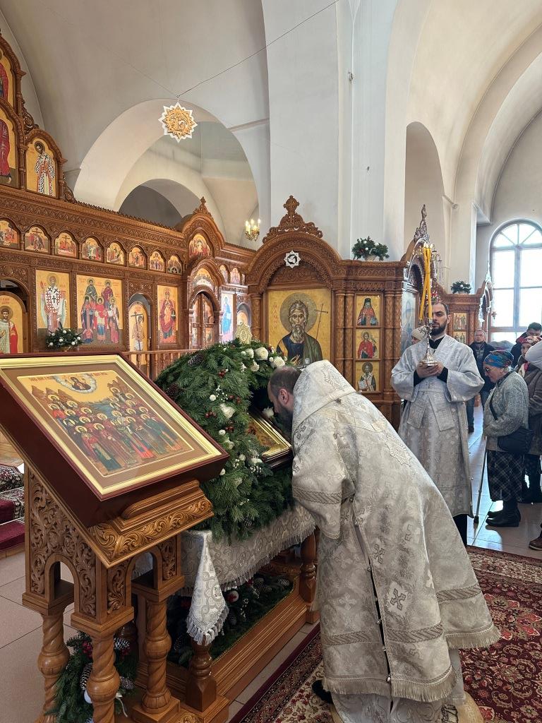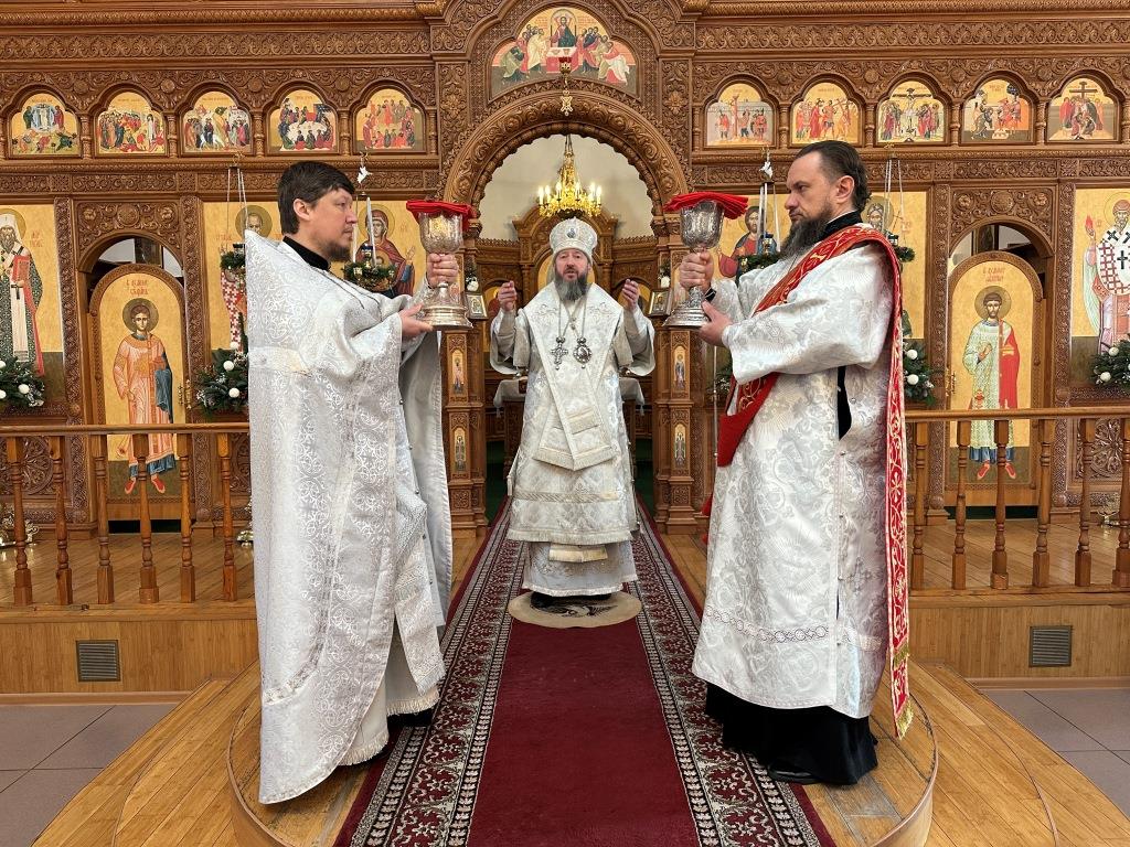 После заамвонной молитвы состоялось славление Рождеству Христову и Собору новомучеников и исповедников Восточно-Казахстанских. Затем Высокопреосвященный владыка вознёс молитву «святым подвижникам, в земле нашей прославленным»; завершая богослужение, архиепископ Амфилохий обратился к собравшимся со словами поучения.