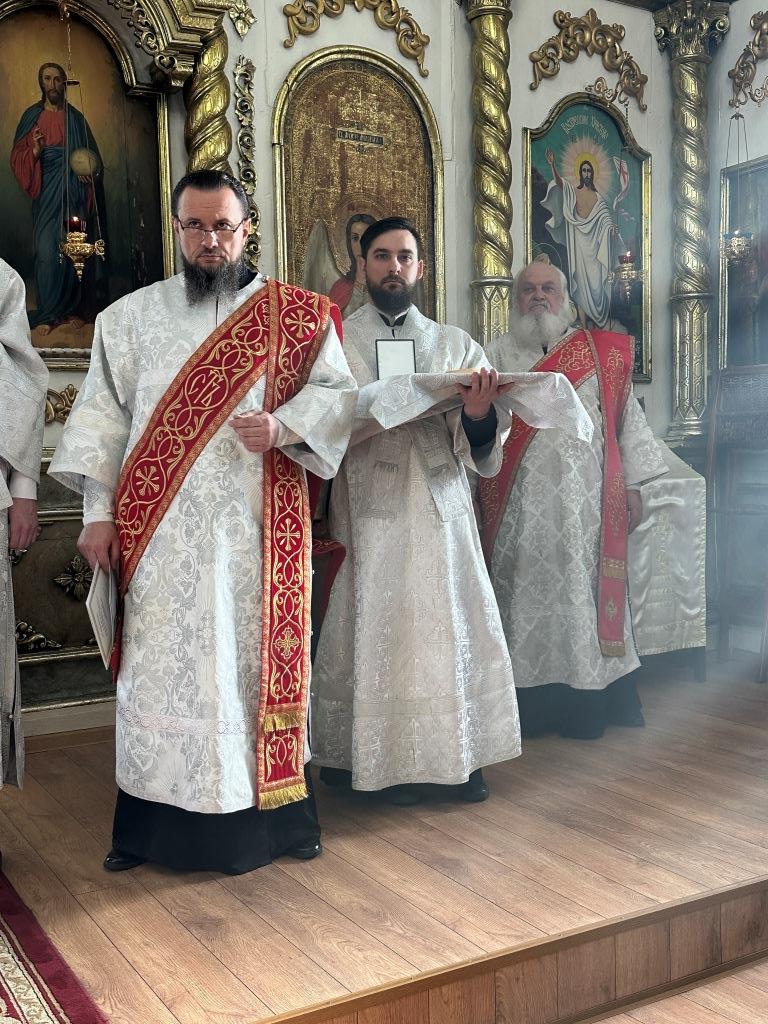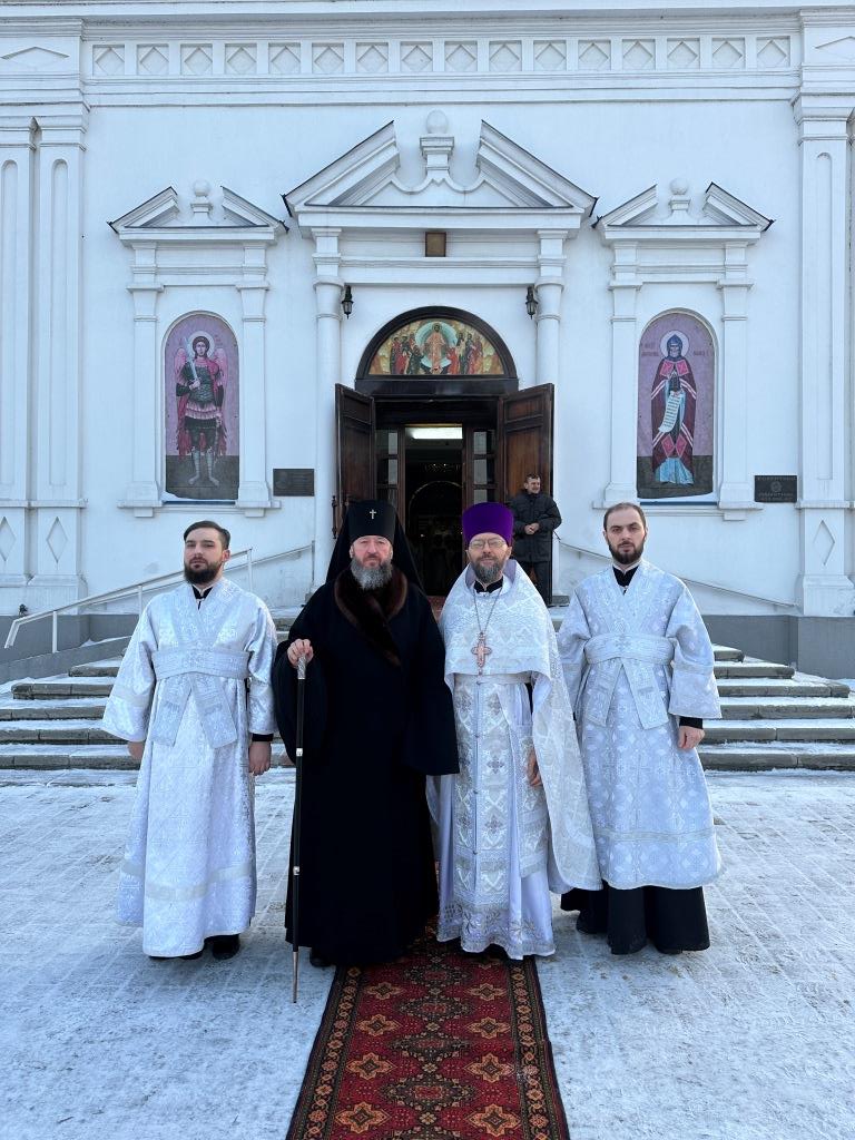 Хор Воскресенского собора под управлением регента Ю. Хохряковой исполнял песнопения Божественной Литургии. За богослужением молились прихожане Воскресенского собора, преподаватели и воспитанники приходской воскресной школы, представители казачьих организаций. Перед причастием мирян проповедовал протоиерей Петр Хонин.