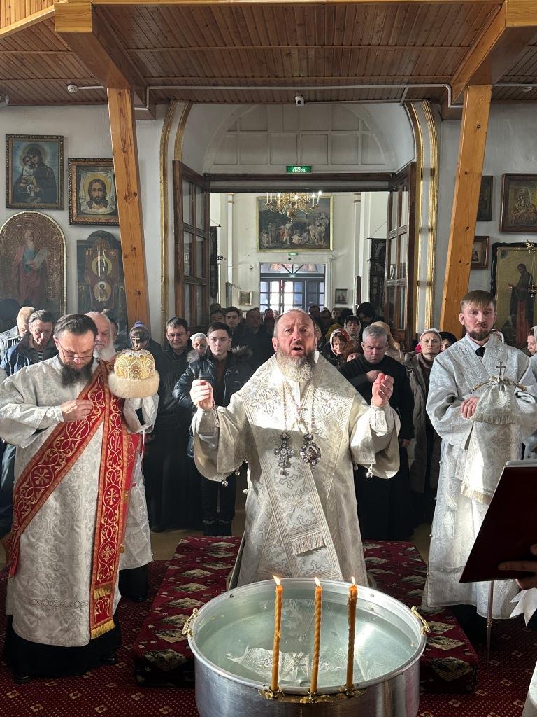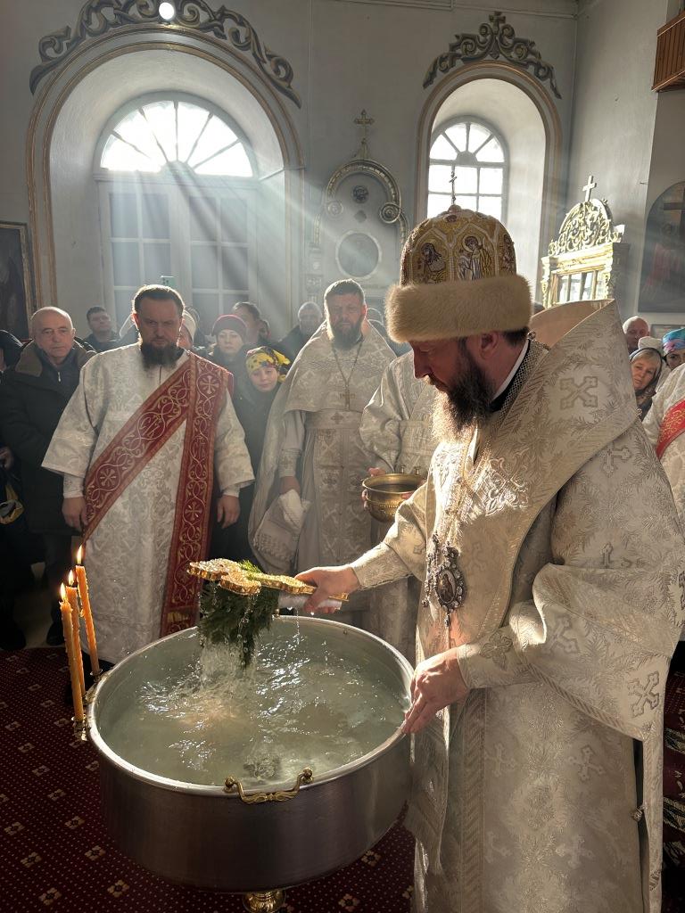 По церковному уставу, после Божественной Литургии была совершена великая вечерня с чтением праздничных паремий; затем архиепископ Амфилохий возглавил чин великого освящения воды. Завершая праздничное богослужение, Высокопреосвященнейший Владыка поздравил духовенство и народ Божий с праздником Крещения Господня и произнес слова поучения.