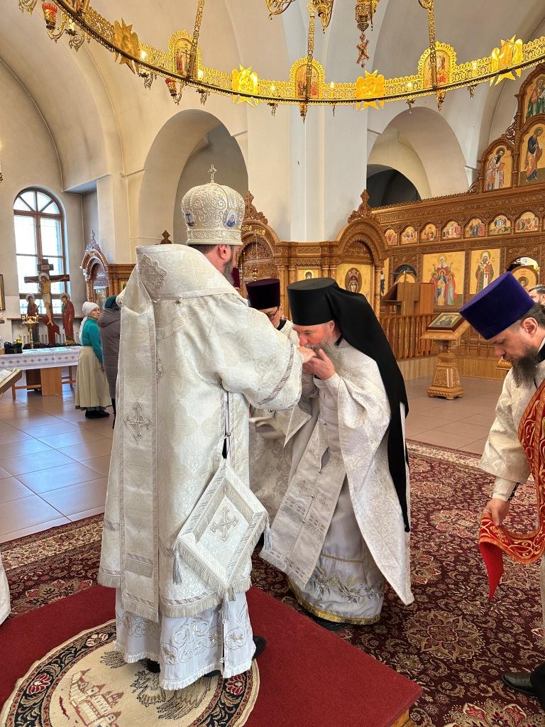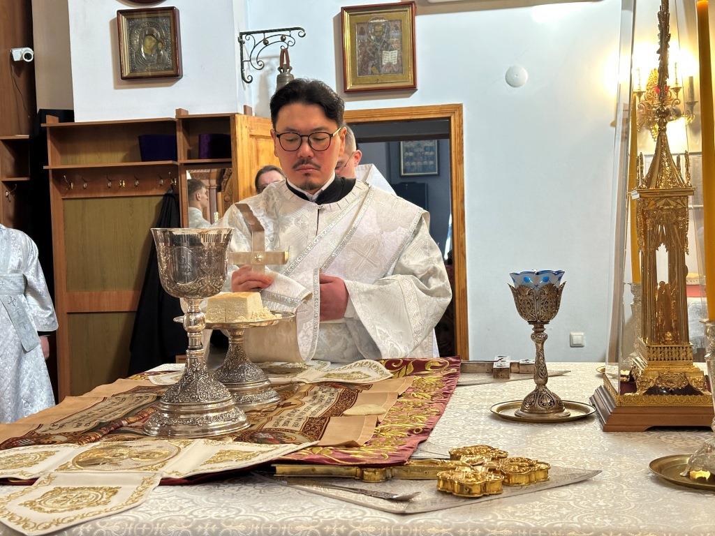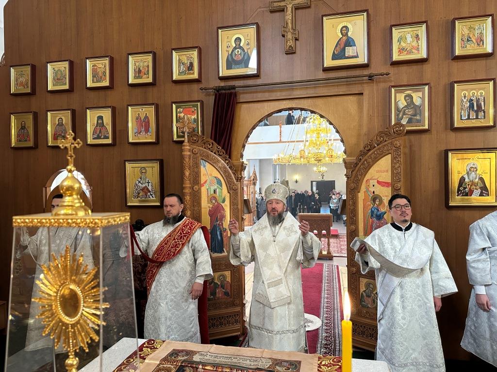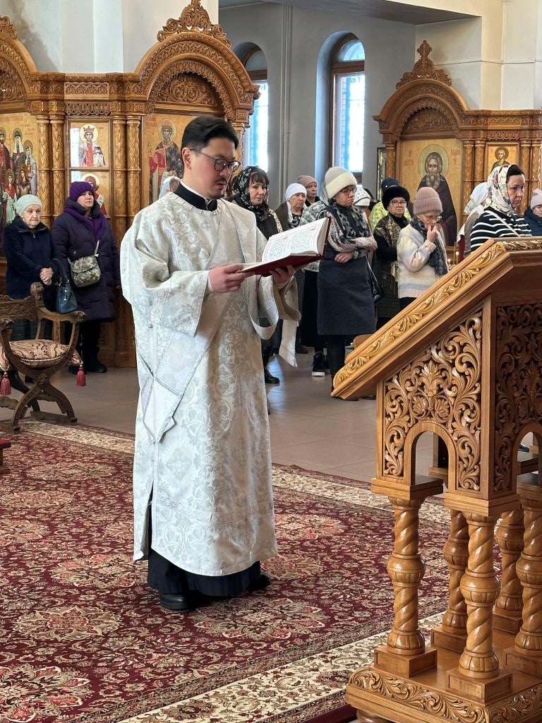 В субботу мясопустную Высокопреосвященнейший архиепископ Усть-Каменогорский и Семипалатинский Амфилохий совершил Божественную Литургию святителя Иоанна Златоуста в Андреевском кафедральном соборе города Усть-Каменогорска. Владыке архиепископу сослужили: ключарь кафедрального собора иеромонах Никодим (Авдеев), клирик собора иерей Константин Дьяков; протодиакон Андрей Дудник, секретарь епархии диакон Илия Кван, диакон Кирилл Рамазанов.