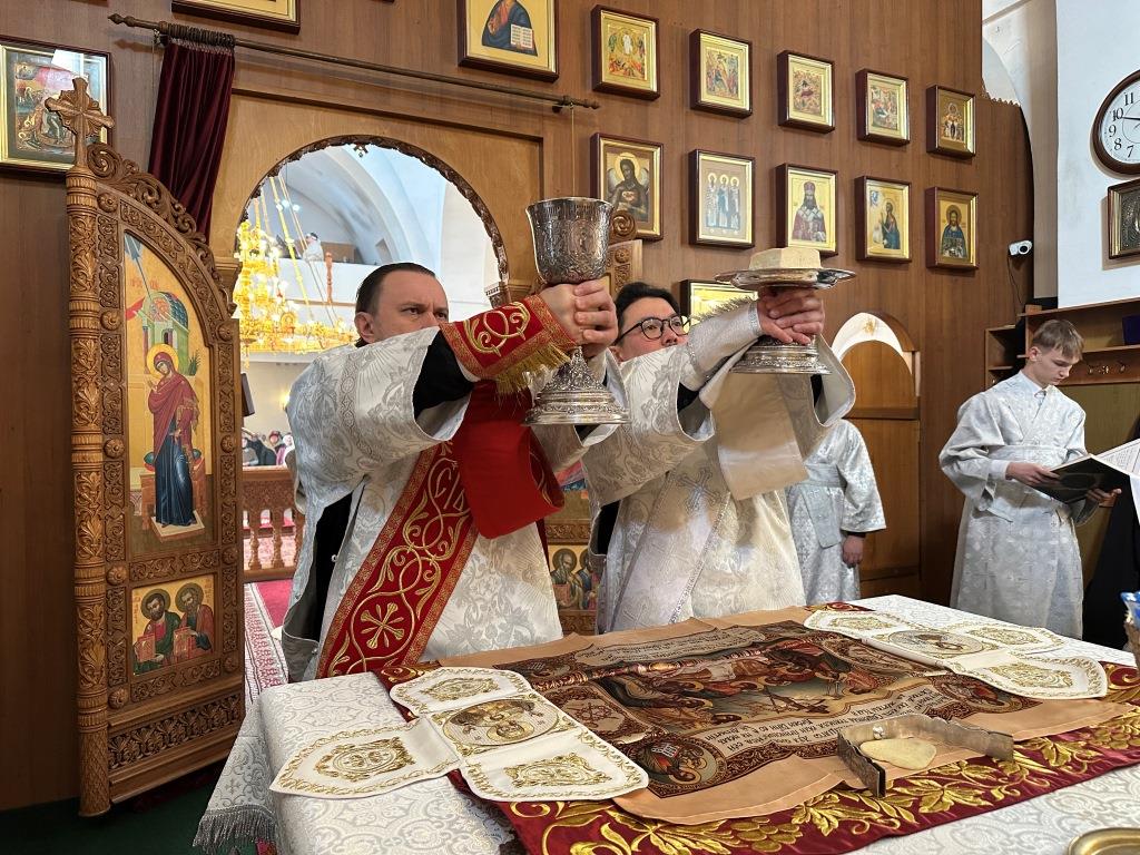 За богослужением молилcись и причащались Христовых Таин прихожане Андреевского собора, насельники Свято-Троицкого мужского монастыря города Усть-Каменогорска, сотрудники епархиального управления. Песнопения Литургии и заупокойной мясопустной субботы исполнял хор под управлением регента Н. Романцовой. На заупокойной ектении сугубо поминались почившие священнослужители Восточного Казахстана, прихожане и благодетели кафедрального собора.
