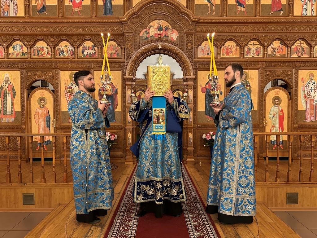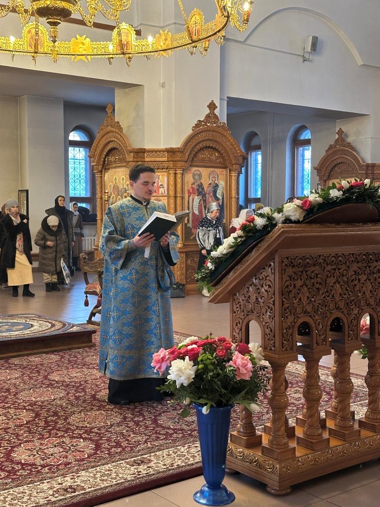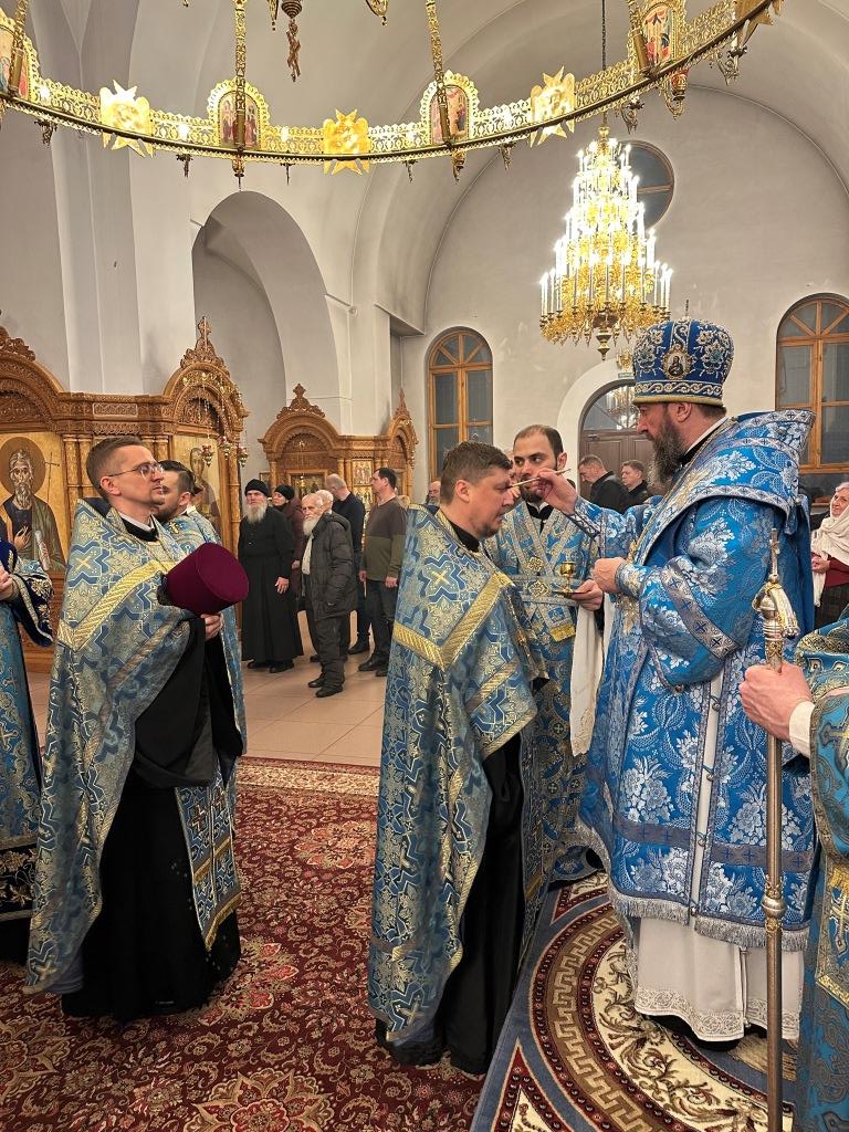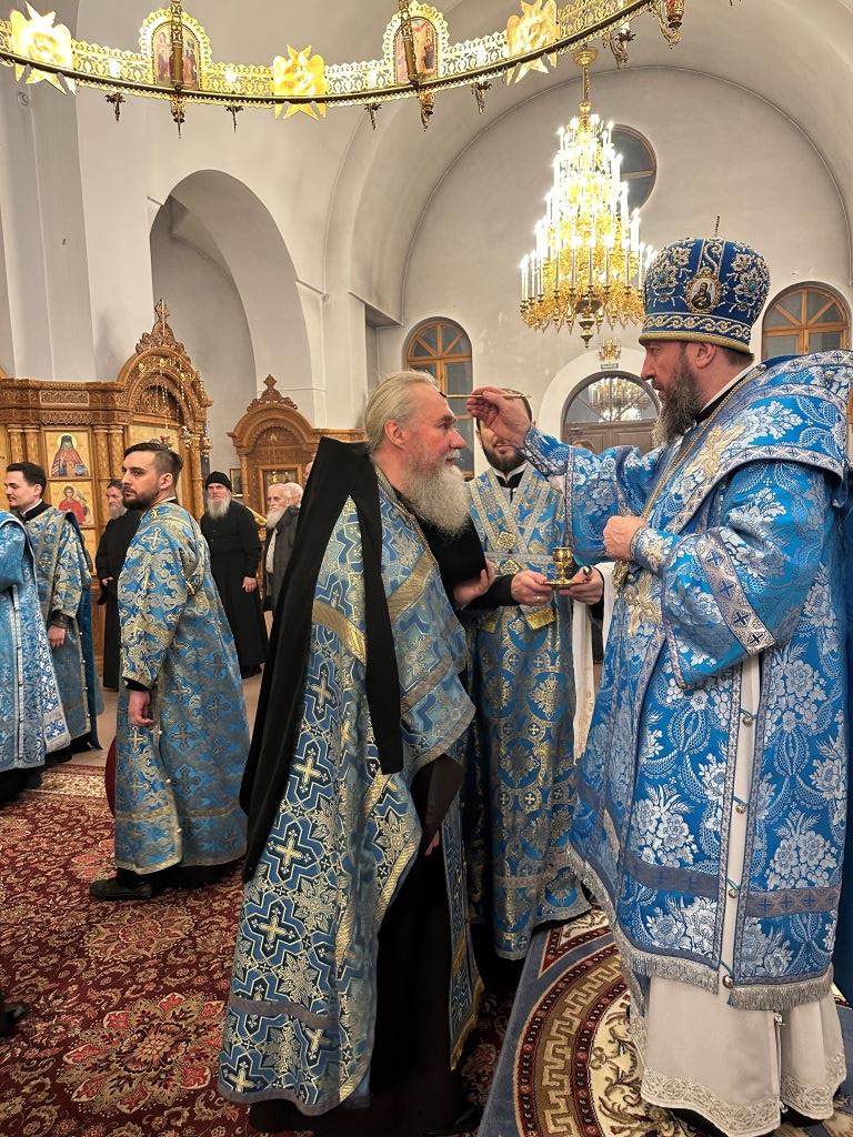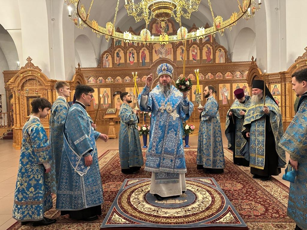 Владыке архиепископу сослужили: ключарь кафедрального собора иеромонах Никодим (Авдеев), клирики собора иерей Роман Подрезов, иерей Константин Дьяков; протодиакон Андрей Дудник, секретарь епархии диакон Илия Кван, диакон Кирилл Рамазанов. За праздничным богослужением совершалась лития – сугубо моление с освящением хлеба, пшеницы, вина и елея.