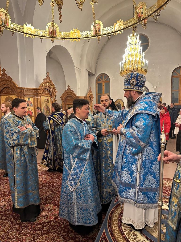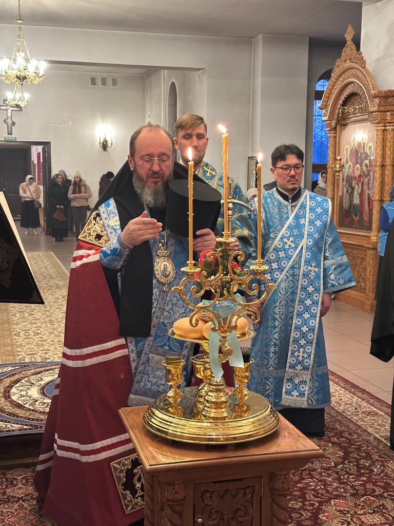 В навечерие двунадесятого торжества Сретения Господня Высокопреосвященнейший архиепископ Усть-Каменогорский и Семипалатинский Амфилохий возглавил служение Всенощного бдения в Андреевском кафедральном соборе города Усть-Каменогорска.