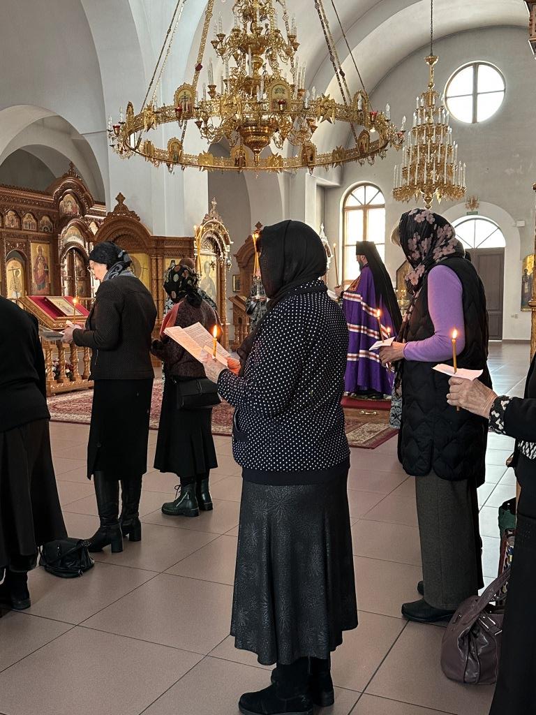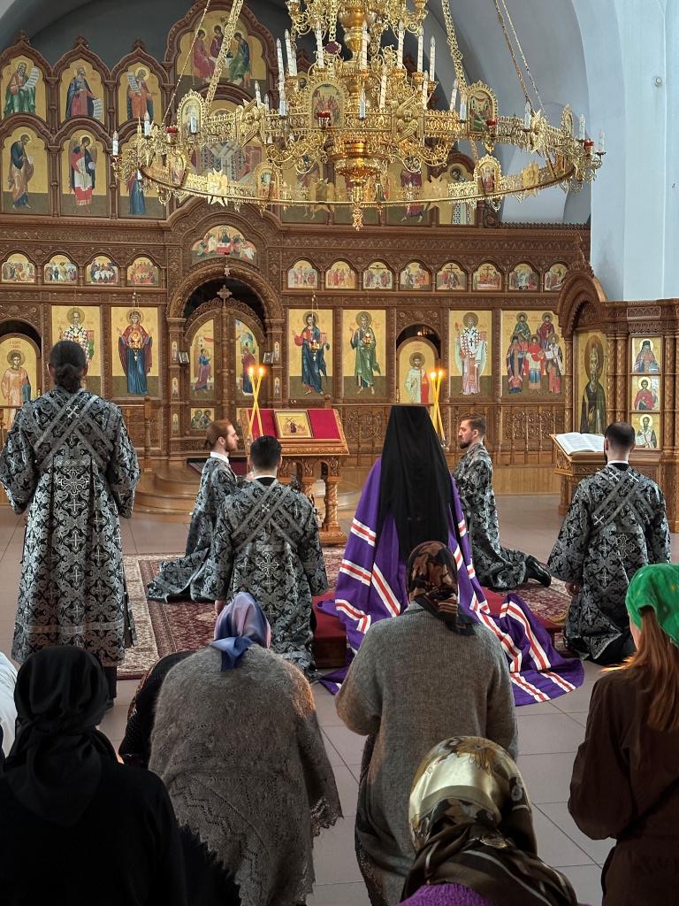 За богослужением молились клирики кафедрального собора, сотрудники епархиального управления, насельники Свято-Троицкого мужского монастыря города Усть-Каменогорска и прихожане Андреевского собора. Песнопения Великого повечерия и покаянного канона исполнял хор кафедрального собора под управлением регента Н. Романцовой.
