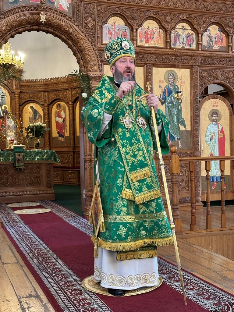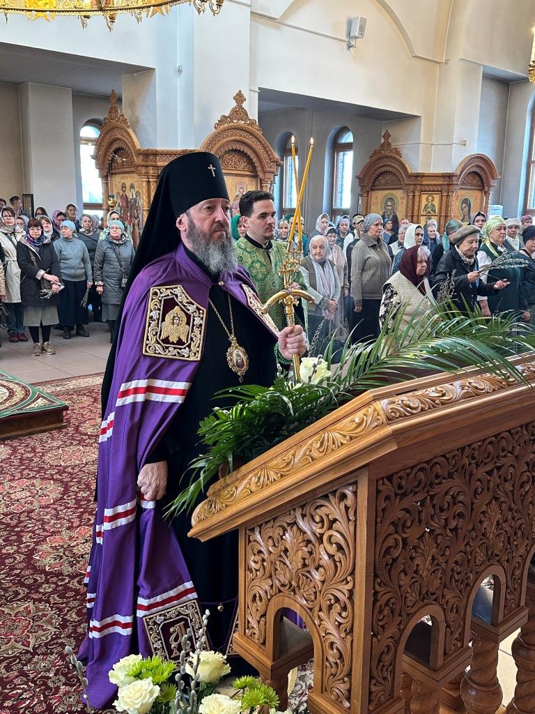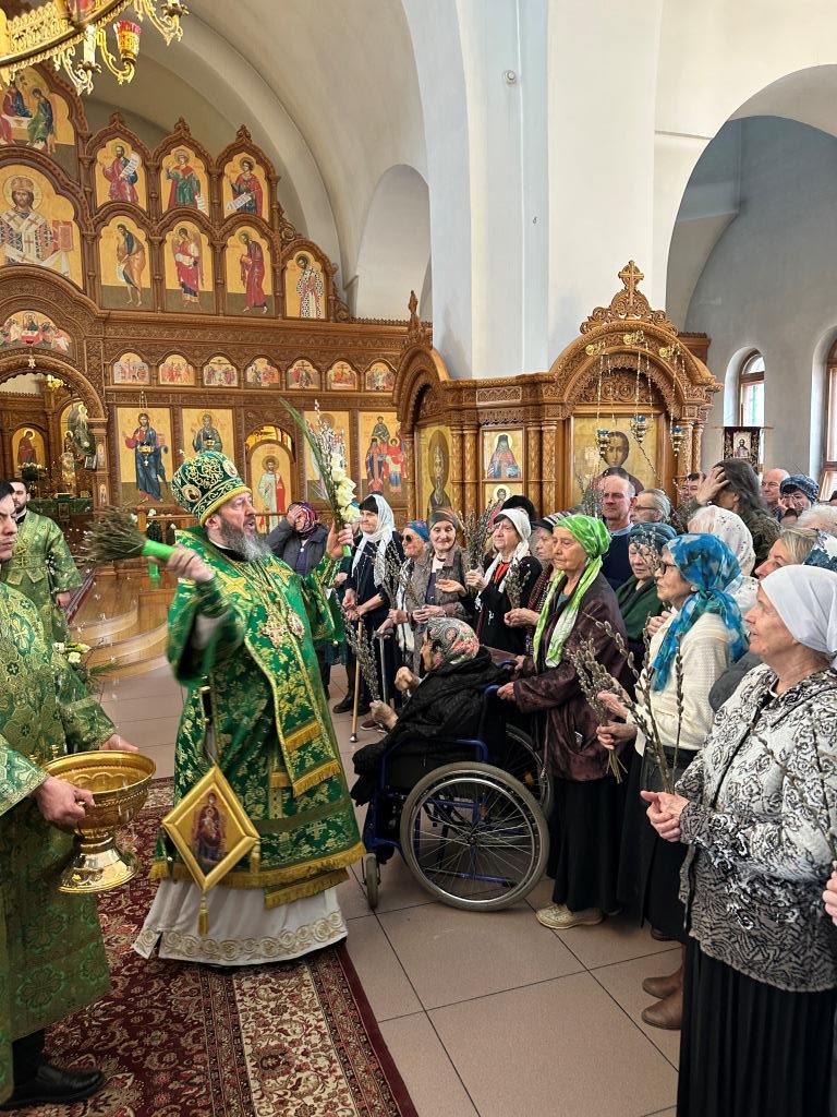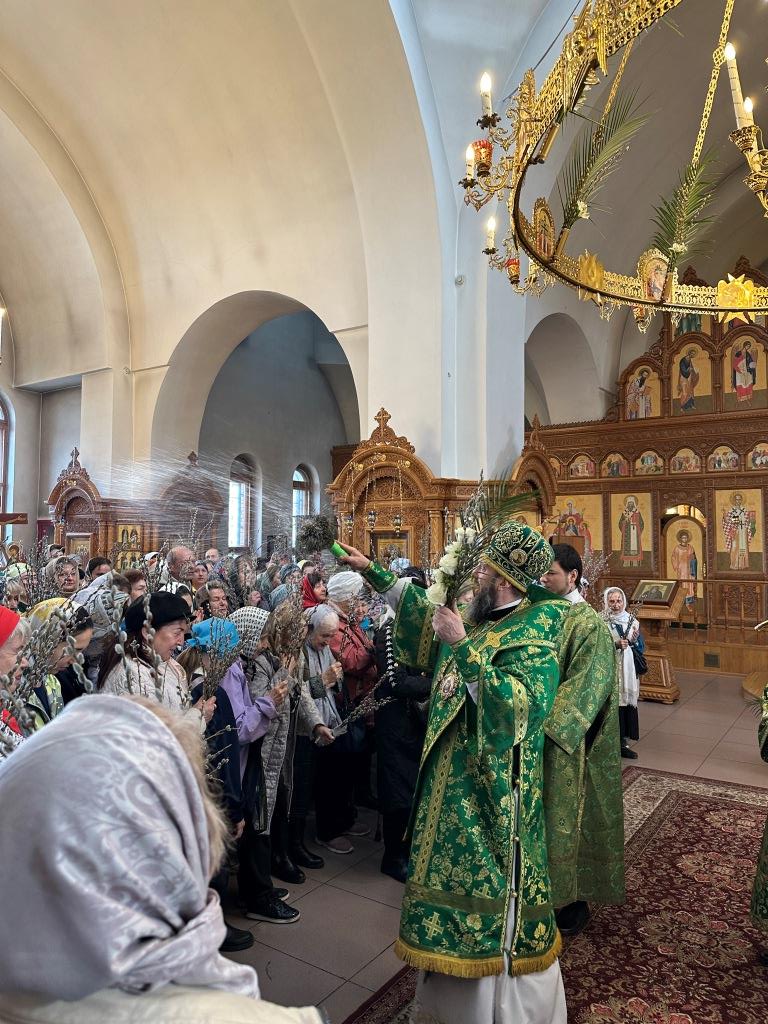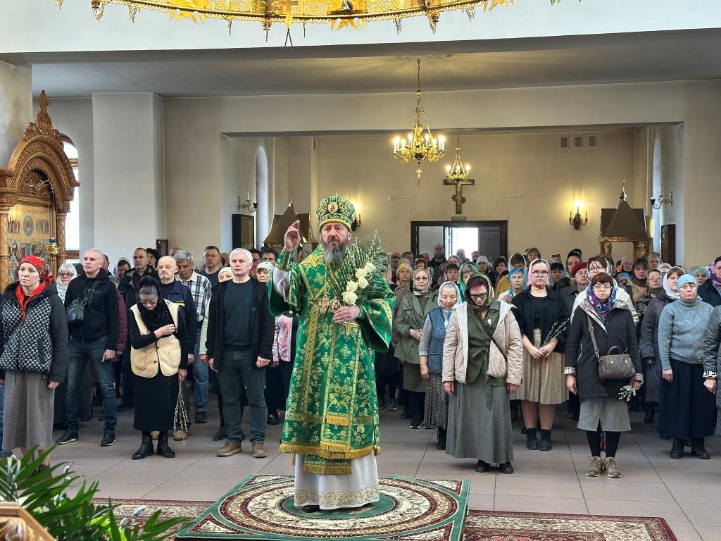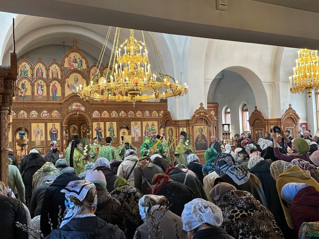 После заамвонной молитвы было совершено освящение ветвей верб, в завершение которого архиепископ Амфилохий обратился к народу Божию со словами Архипастырской проповеди.