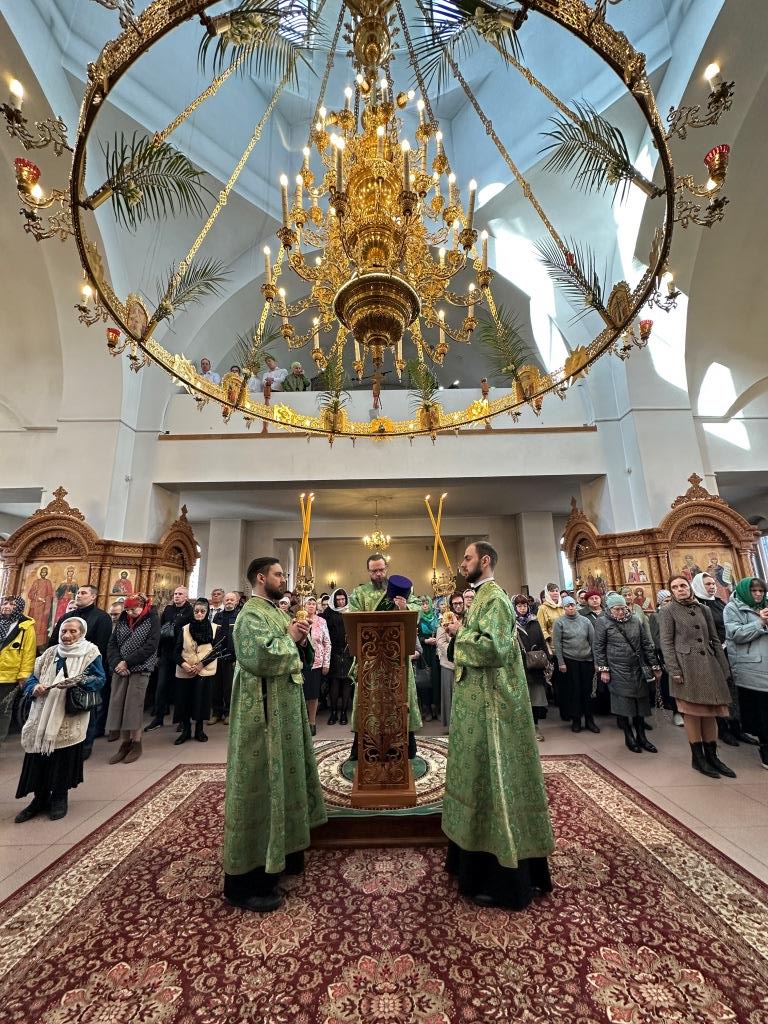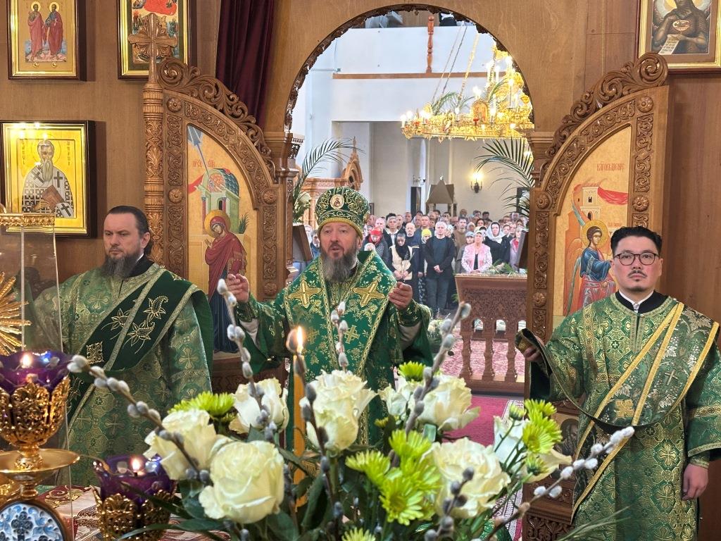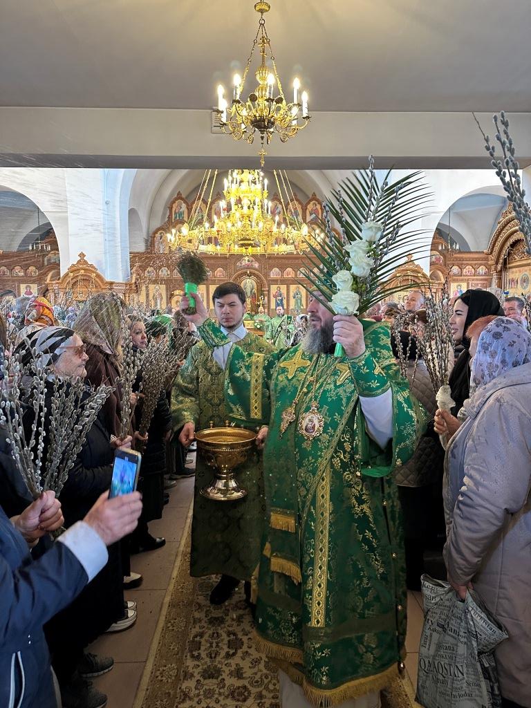 В день двунадесятого праздника Входа Господня в Иерусалим Высокопреосвященнейший архиепископ Усть-Каменогорский и Семипалатинский Амфилохий совершил Божественную Литургию святителя Иоанна Златоуста в Свято-Андреевском кафедральном соборе города Усть-Каменогорска.