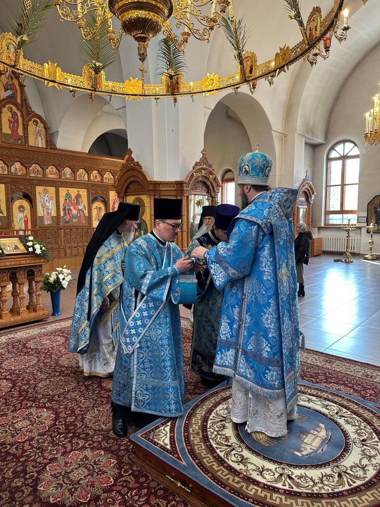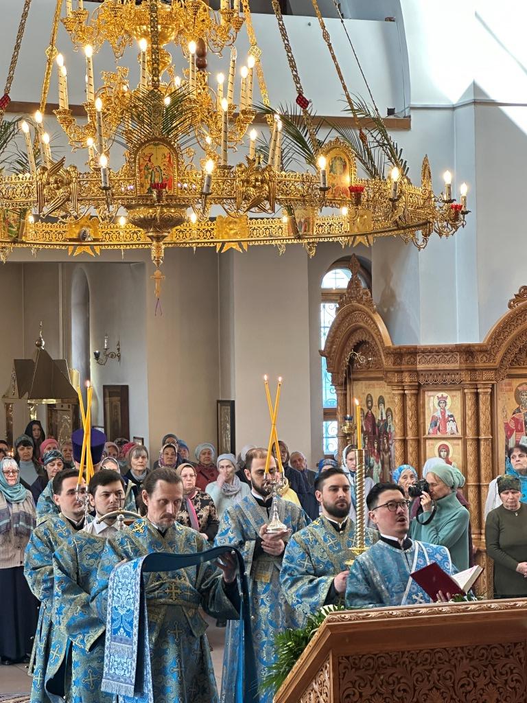 Его Высокопреосвященству сослужили: ключарь собора иеромонах Никодим (Авдеев), клирики главного храма епархии иерей Роман Подрезов и иеромонах Рафаил (Юстус); протодиакон Андрей Дудник, секретарь епархии диакон Илия Кван, диакон Кирилл Рамазанов. Хор под управлением регента Н. Романцовой исполнял песнопения праздника Благовещения и Божественной Литургии. В храме молились и причащались Христовых Таин прихожане и паломники кафедрального собора, сотрудники епархиального управления и насельники Свято-Троицкого мужского монастыря.