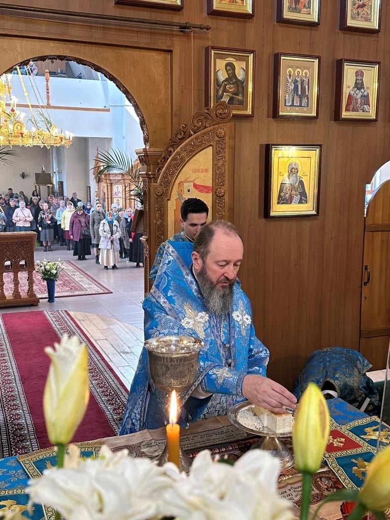 В день праздника Благовещения Пресвятой Богородицы Высокопреосвященнейший архиепископ Амфилохий возглавил служение великой вечерни в соединении с Божественной Литургией святителя Иоанна Златоуста в Андреевском кафедральном соборе города Усть-Каменогорска.
