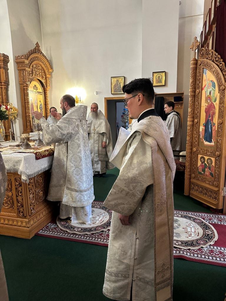 В храме молились и причащались Святых Христовых Таин прихожане кафедрального собора, насельники Свято-Троицкого мужского монастыря, сотрудники епархиального управления. Песнопения Великой Субботы исполнял хор под управлением регента Н. Романцовой.