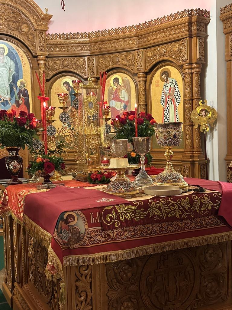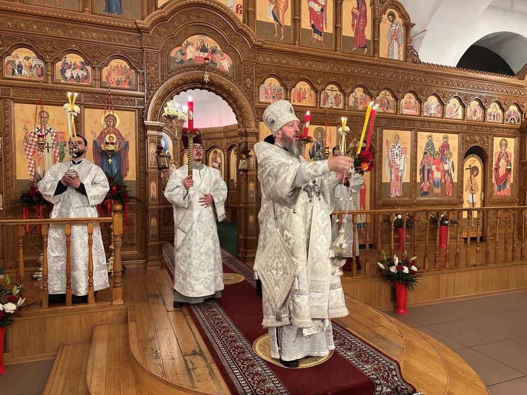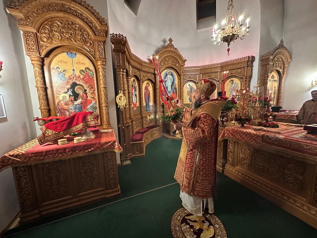 Перед началом Пасхального богослужения была совершена полунощница с каноном Великой Субботы, в котором повествуется о погребении Распятого на Кресте Сына Божия. На девятой песне канона Святая Плащаница была внесена в алтарь и положена на Престол, где она будет пребывать до праздника Вознесения.