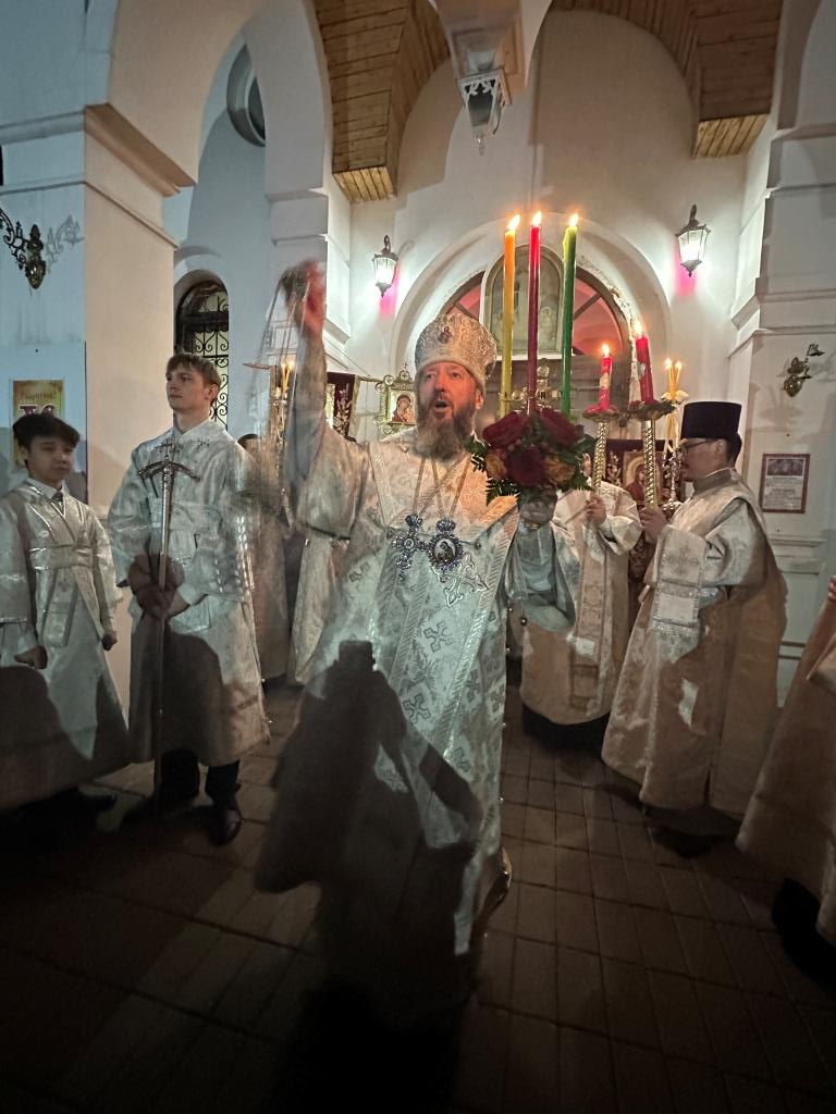 В ночь с 11 на 12 апреля 2026 года в Андреевском кафедральном соборе города Усть-Каменогорска Высокопреосвященнейший архиепископ Усть-Каменогорский и Семипалатинский Амфилохий возглавил полунощницу, крестный ход, Пасхальную заутреню и Божественную литургию святителя Иоанна Златоуста. Высокопреосвященнейшему Владыке сослужили: ключарь Андреевского собора иеромонах Никодим (Авдеев), клирики собора иерей Роман Подрезов, иерей Константин Дьяков, иеромонах Рафаил (Юстус), протодиакон Андрей Дудник, секретарь епархии диакон Илия Кван, диакон Кирилл Рамазанов.