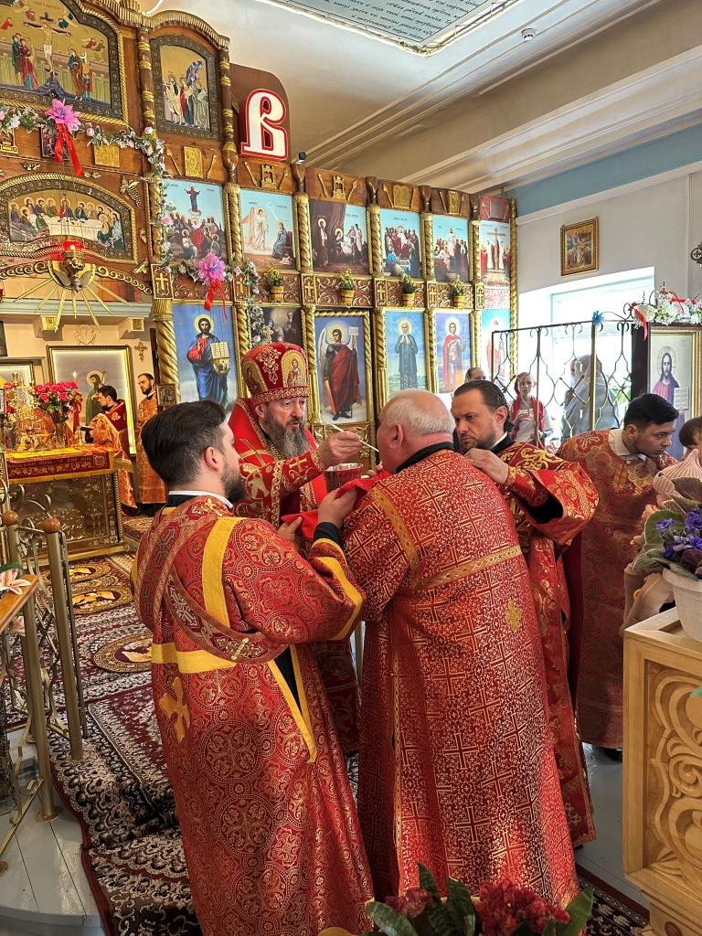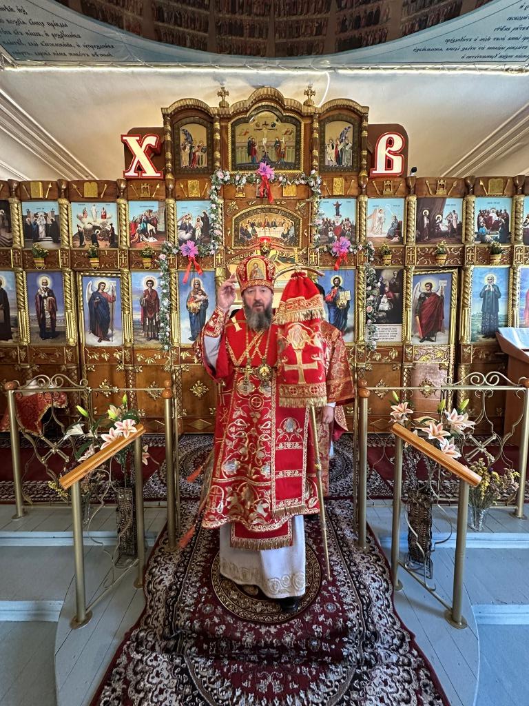 После проповеди Владыка Амфилохий призвал Божие благословение на прихожан и окропил молящихся святой водой.