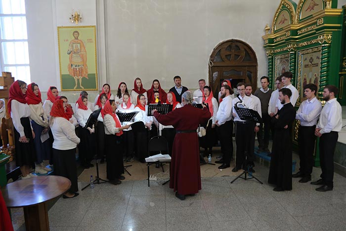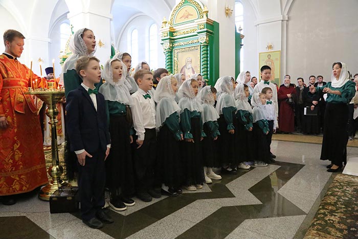 Богослужебные песнопения исполнил архиерейский хор Карагандинской епархии под управлением В. Тесленко.