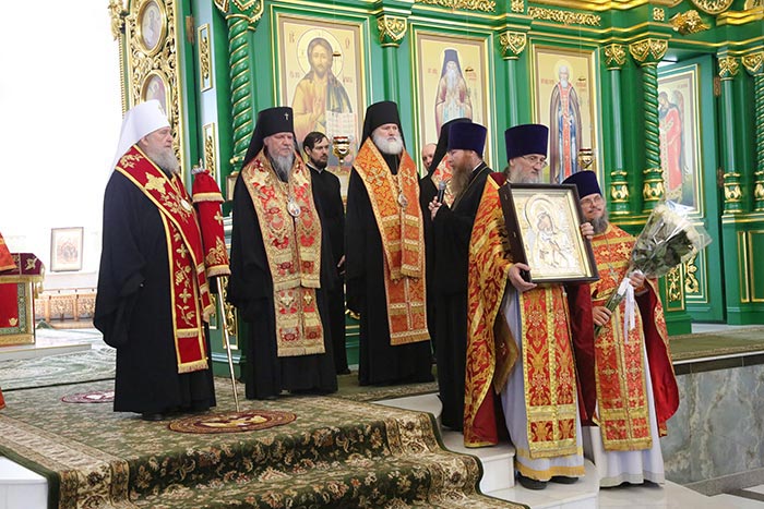 Отмечающему памятные даты Его Высокопреосвященству вместе с пожеланиями многих и благих лет жизни клириками Карагандинской епархии был преподнесен образ Пресвятой Богородицы «Феодоровская».