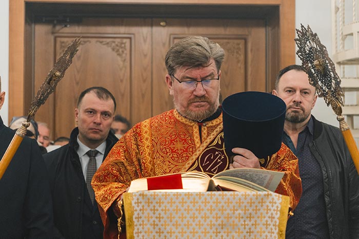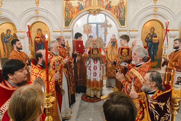 Богослужение завершилось славлением Светлому Христову Воскресению, после чего владыка митрополит произнес возглас «Христос воскресе!» на разных языках, древних и современных.