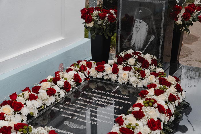 К могиле покойного архиепископа Антония (Москаленко) участники общей заупокойной молитвы возложили цветы.