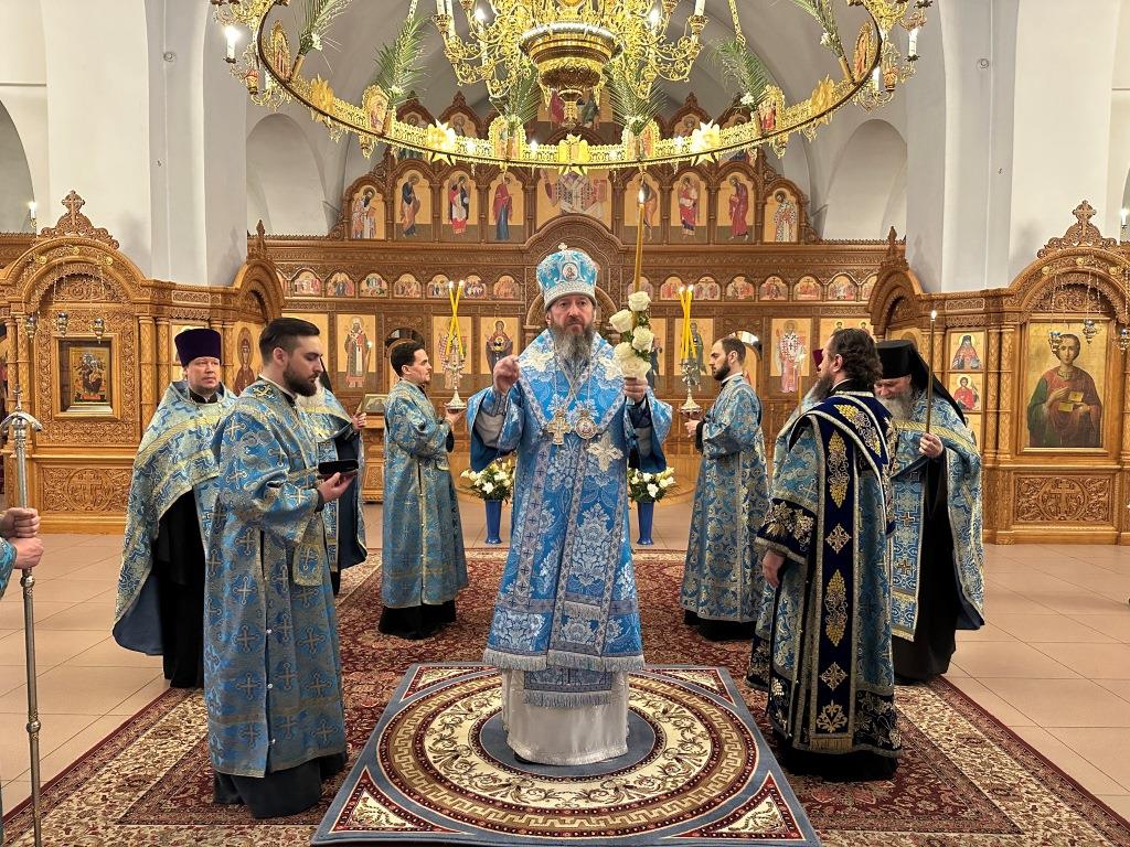 В день праздника Благовещения Пресвятой Богородицы Высокопреосвященнейший архиепископ Амфилохий возглавил служение великой вечерни в соединении с Божественной Литургией святителя Иоанна Златоуста в Андреевском кафедральном соборе города Усть-Каменогорска.