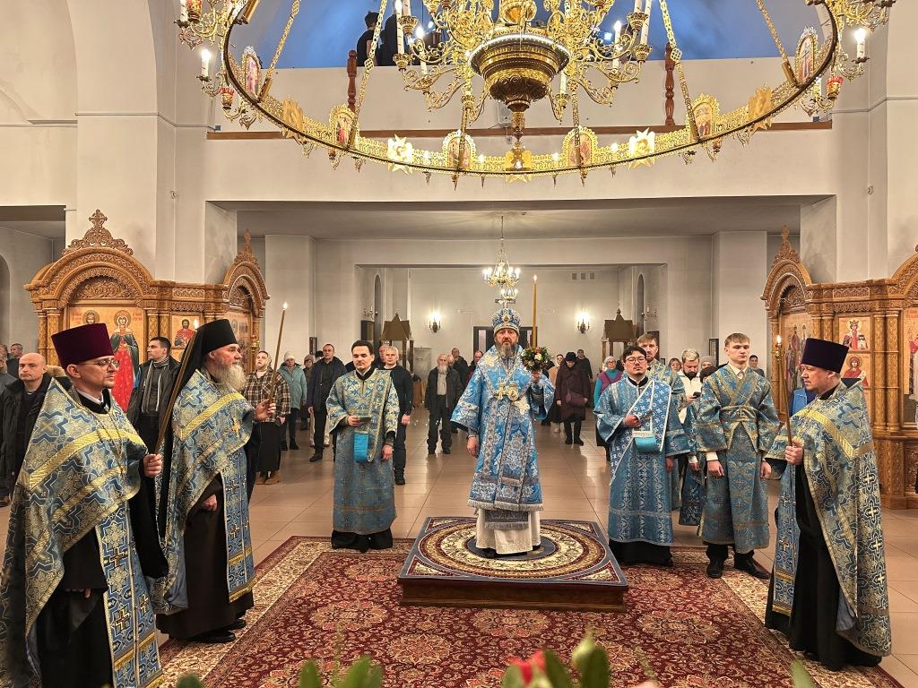 Его Высокопреосвященству сослужили: благочинный Семипалатинского церковного округа протоиерей Роман Сычук, клирик Знаменско-Абалацкой обители иеромонах Агапит (Никонов); протодиакон Андрей Дудник, секретарь епархии диакон Илия Кван.