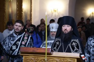 Архипастырю сослужили: духовник епархии архимандрит Спиридон (Теплухин), духовник Знаменско-Абалацкого женского монастыря города Семипалатинска игумен Аникита (Макаров), ключарь кафедрального собора иеромонах Никодим (Авдеев), клирик собора иерей Константин Дьяков, протодиакон Андрей Дудник, иеродиакон Мефодий (Шевчук), иеродиакон Тимофей (Хитрич).