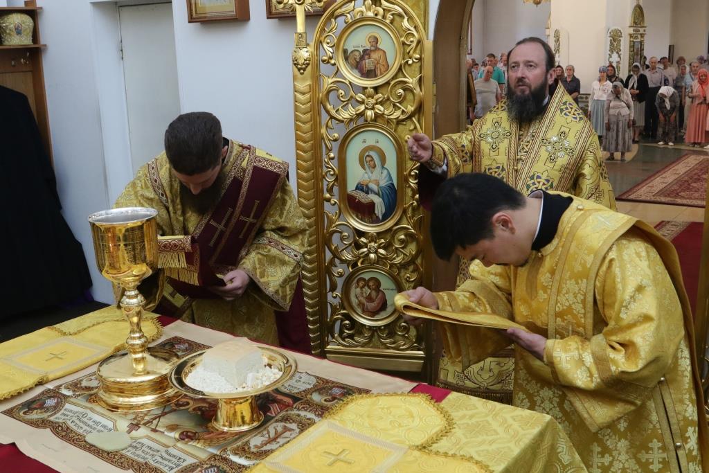 Митрополит Астанайский и Казахстанский Александр совершил Божественную Литургию в храме в честь Живоначальной Троицы Свято-Троицкого мужского монастыря города Усть-Каменогорска.