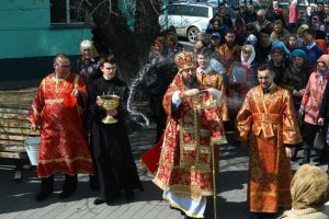 Его Преосвященству сослужили: ключарь собора иеромонах Никодим (Авдеев), клирик собора иерей Константин Дьяков, секретарь епархии диакон Илия Кван, протодиакон Андрей Дудник, иеродиакон Мефодий (Шевчук). За праздничным богослужением совершалась лития – сугубое моление с освящением хлебов, пшеницы, вина и елея. Праздничные песнопения исполнял хор кафедрального собора под управлением Н. Романцовой.