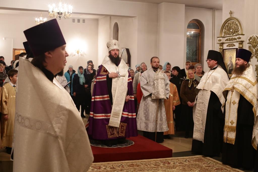 Его Преосвященству сослужили: клирики собора иеромонах Севастиан (Андрющенко) и иерей Алексий Клепиков, настоятель Успенского храма села Канонерка Восточно-Казахстанской области иерей Георгий Гуцалов; диаконский чин возглавил протодиакон Георгий Засыпкин.