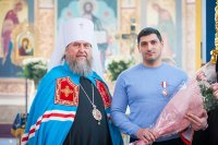 Глава Митрополичьего округа вручил орден священномученика Пимена, епископа Верненского, А.С. Арутюняну за поддержку социальных и молодежных проектов Православной Церкви Казахстана.