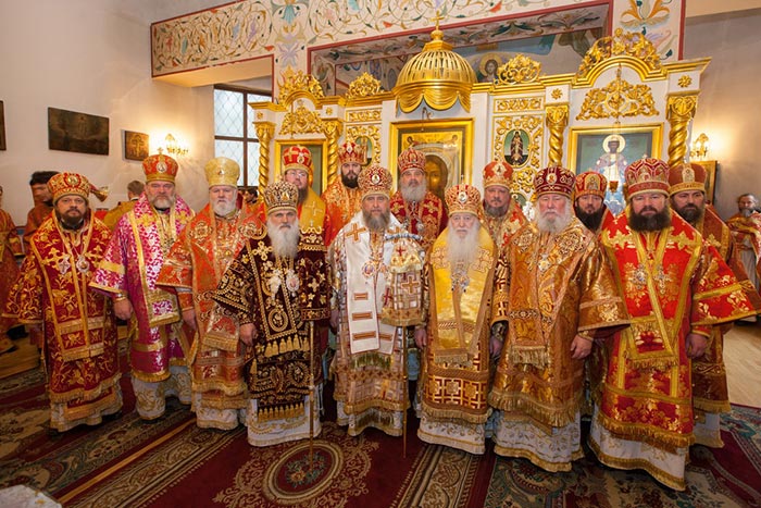 Главам Митрополичьих округов сослужили: архиепископ Уральский и Актюбинский Антоний; архиепископ Чимкентский и Таразский Елевферий; епископ Гурий (Шалимов); епископ Костанайский и Рудненский Анатолий; викарий Астанайской епархии, епископ Талдыкорганский Нектарий; Управляющий делами Православной Церкви Казахстана епископ Каскеленский Геннадий; епископ Павлодарский и Экибастузский Варнава, епископ Карагандинский и Шахтинский Севастиан, епископ Усть-Каменогорский и Семипалатинский Амфилохий, епископ Бишкекский и Кыргызстанский Даниил; епископ Кокшетауский и Акмолинский Серапион; епископ Петропавловский и Булаевский Владимир; благочинный храмов Алма-Аты, настоятель Свято-Никольского собора протоиерей Валерий Захаров; руководители епархиальных отделов и комиссий в священном сане; настоятели и духовенство храмов Алма-Атинской епархии.