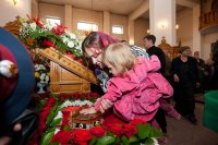 На протяжении всего дня в Софийском соборе совершалось молитвенное поклонение перед ковчегом с мощами мученицы Агафии Панормской.