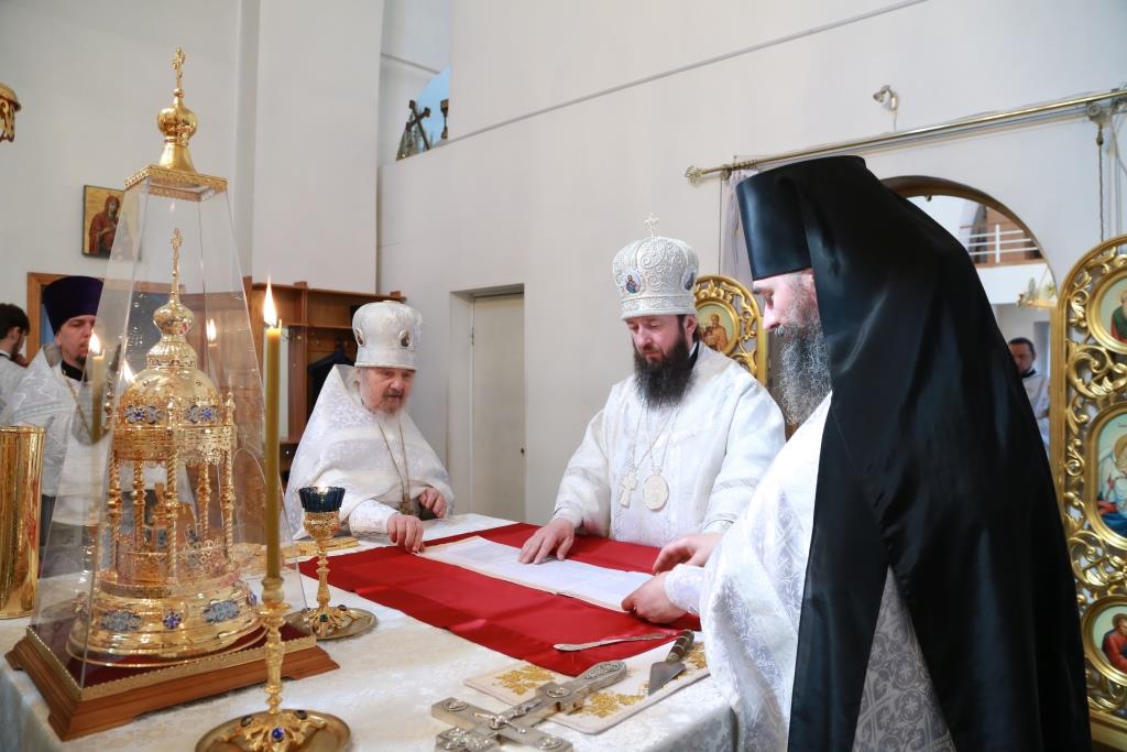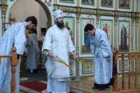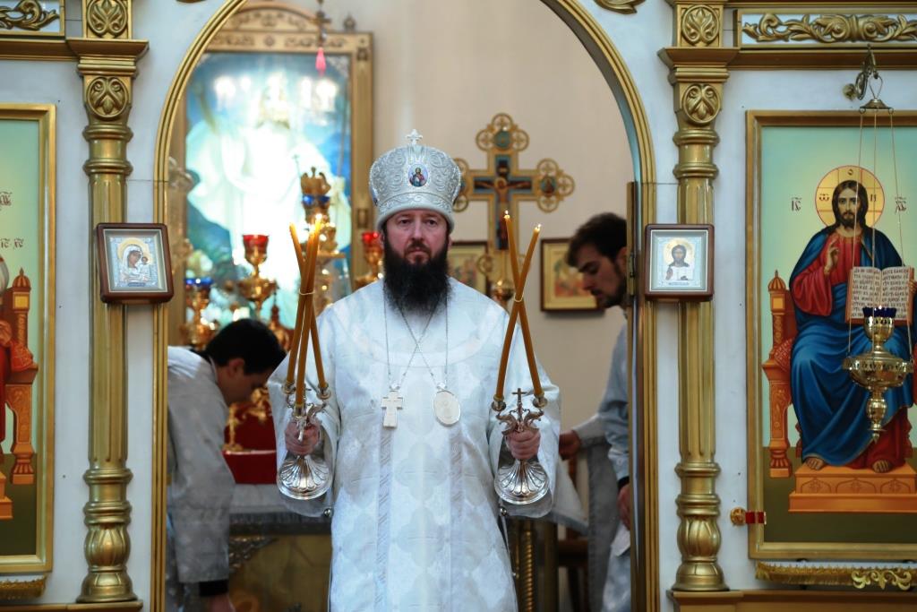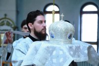 Архипастырю сослужили: духовник епархии архимандрит Спиридон (Теплухин), ключарь кафедрального собора иеромонах Никодим (Авдеев), клирики собора иерей Алексий Клепиков и иеромонах Севастиан (Андрющенко). Диаконский чин возглавил протодиакон Георгий Засыпкин.