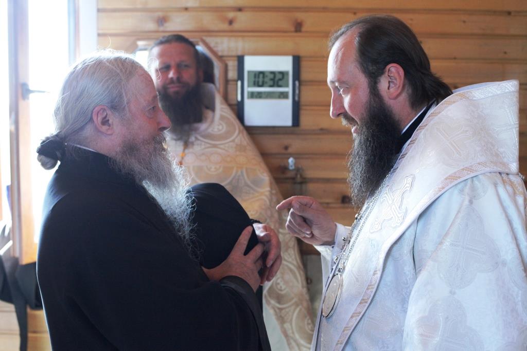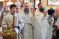 Архипастырю сослужили: настоятель Преображенского храма протоиерей Петр Хонин; настоятель Казанского храма пос. Усть-Таловка протоиерей Роман Сычук; ключарь Андреевского кафедрального собора г. Усть-Каменогорска иеромонах Никодим (Авдеев), протодиакон Андрей Дудник, иеродиакон Мефодий (Шевчук).