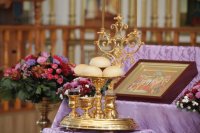 В соответствии с богослужебным уставом на Всенощном бдении совершалась лития – сугубое моление с освящением хлеба, пшеницы, вина и елея.