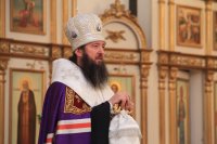 Его Преосвященству сослужили: благочинный Усть-Каменогорского церковного округа иерей Алексий Анищенко, настоятели и клирики городских храмов, соборное духовенство.