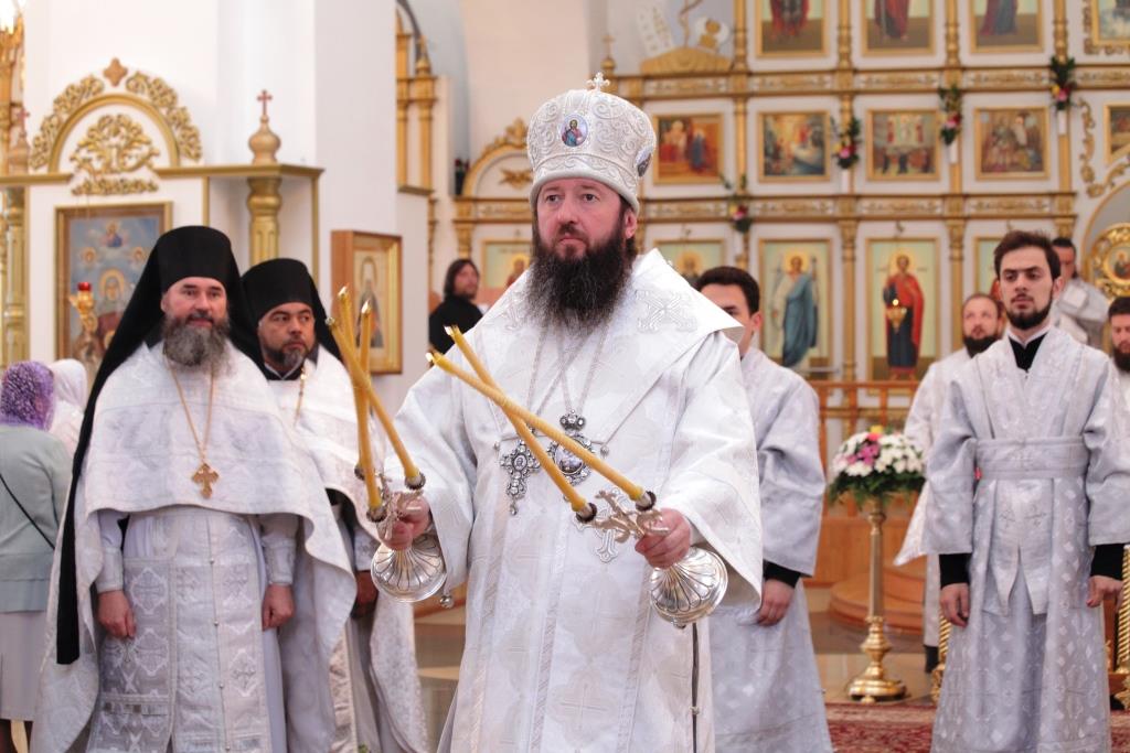 После проповеди Преосвященнейший Архипастырь призвал Божие благословение на молящихся и пожелал всем собравшимся крепости духовных и телесных сил.