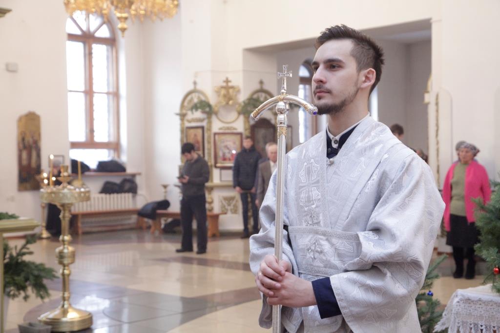 По окончании Литургии перед свечой, знаменующей Вифлеемскую звезду, были пропеты тропарь и кондак праздника Рождества Христова. В заключение Богослужения Преосвященнейший епископ Амфилохий поздравил духовенство и мирян с наступающим праздником: