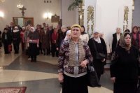 За Богослужением пел хор Андреевского собора под управлением В. Фёдоровой. После причащения духовенства иерей Алексий Горбунов обратился к прихожанам с проповедью.