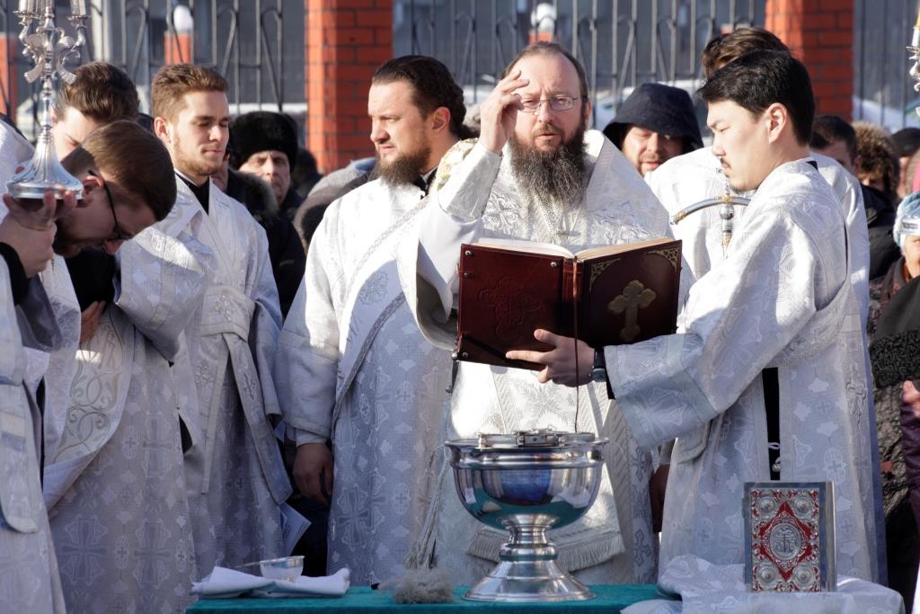 Преосвященнейший епископ Усть-Каменогорский и Семипалатинский Амфилохий возглавил служение Божественной Литургии святителя Иоанна Златоуста и чин великого освящения воды в Свято-Андреевском кафедральном соборе столицы Рудного Алтая. В праздничный день Его Преосвященству сослужили: духовник епархии архимандрит Спиридон (Теплухин), ключарь Андреевского собора иеромонах Никодим (Авдеев), клирик собора иерей Алексий Клепиков, протодиакон Андрей Дудник, иеродиакон Мефодий (Шевчук), диакон Владимир Лаврешин.