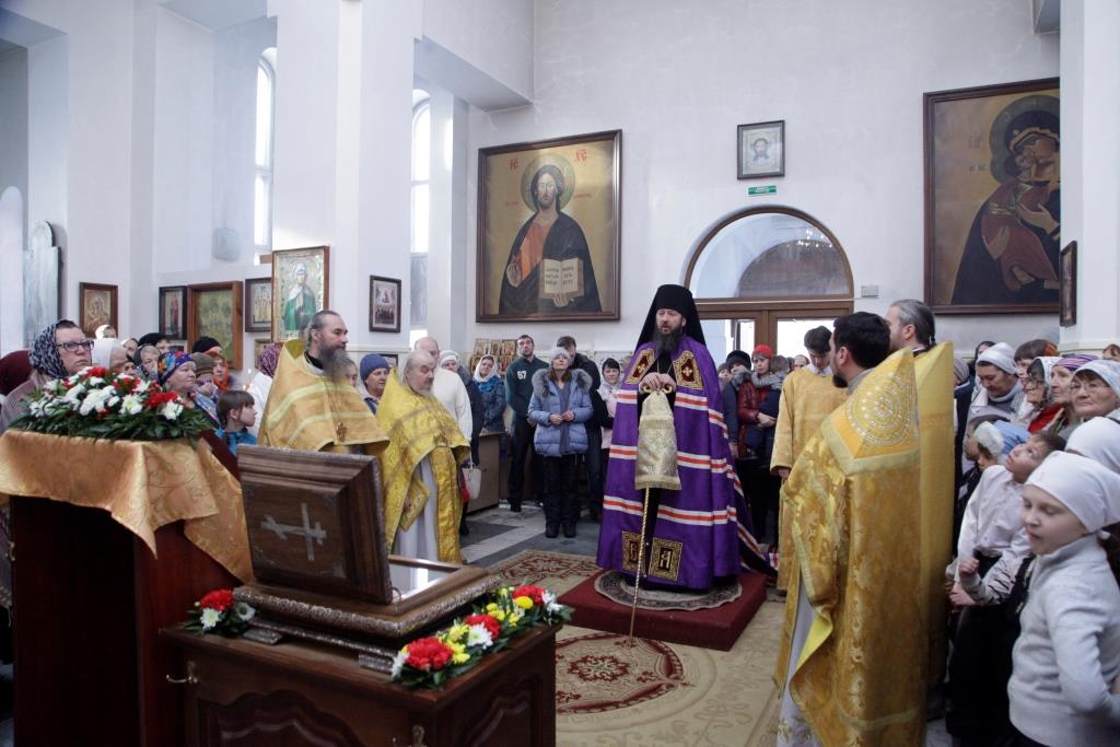 За воскресной Божественной Литургией молились: секретарь Усть-Каменогорской епархии И.О. Кван, прихожане Зиновьевского храма, преподаватели и воспитанники приходской воскресной школы, паломники с городских приходов Усть-Каменогорска и окрестных населенных пунктов. Песнопения Богослужения исполнял хор под управлением регента Н. Романцовой. Перед причастием мирян проповедовал священник Алексий Анищенко.
