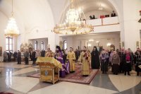 За воскресным богослужением молились насельники Свято-Троицкого мужского монастыря, сотрудники епархиального управления, прихожане Андреевского кафедрального собора.