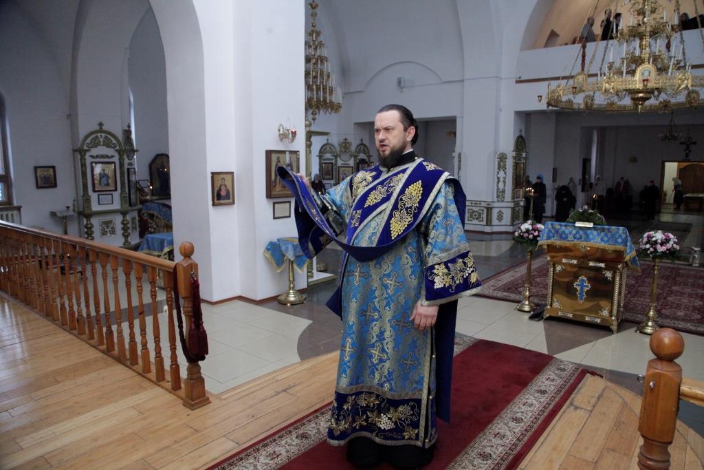 Его Преосвященству сослужили: ключарь кафедрального собора иеромонах Никодим (Авдеев), протоиерей Николай Темирбаев, клирики собора иерей Алексий Клепиков и иерей Константин Дьяков, протодиакон Андрей Дудник, иеродиакон Мефодий (Шевчук), диакон Владимир Лаврешин. Песнопения праздника исполнял хор кафедрального собора под управлением регента Н. Романцовой. За богослужением совершалась лития – сугубое моление с освящением хлебов, пшеницы, вина и елея.