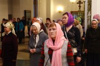 Песнопения воскресного дня и крестопоклонной недели исполнял хор кафедрального собора под управлением В. Федоровой. За богослужением молились прихожане Андреевского собора, сотрудники епархиального управления, преподаватели и воспитанники Центральной воскресной школы, братия Свято-Троицкого мужского монастыря.
