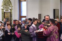 «Третье воскресение святого поста – это время для подведения неких предварительных итогов всего нашего великопостного подвига. Наступила середина Четыредесятницы, мы сегодня собрались под сенью Креста Христова для участия в Евхаристии, ожидая от Всемилостивого Бога укрепления, ожидая поддержки в наших подвигах воздержания и покаянной работы над собой. Вспоминая слова апостола Павла, мы свидетельствуем, что «любовь никогда не перестает» (1 Кор. 13:8), любовь Божия к Своему творению не иссякает, от века и доныне Господь отвечает на молитвы Своих верных чад, и являет Свою помощь всем, призывающим Его святое имя.