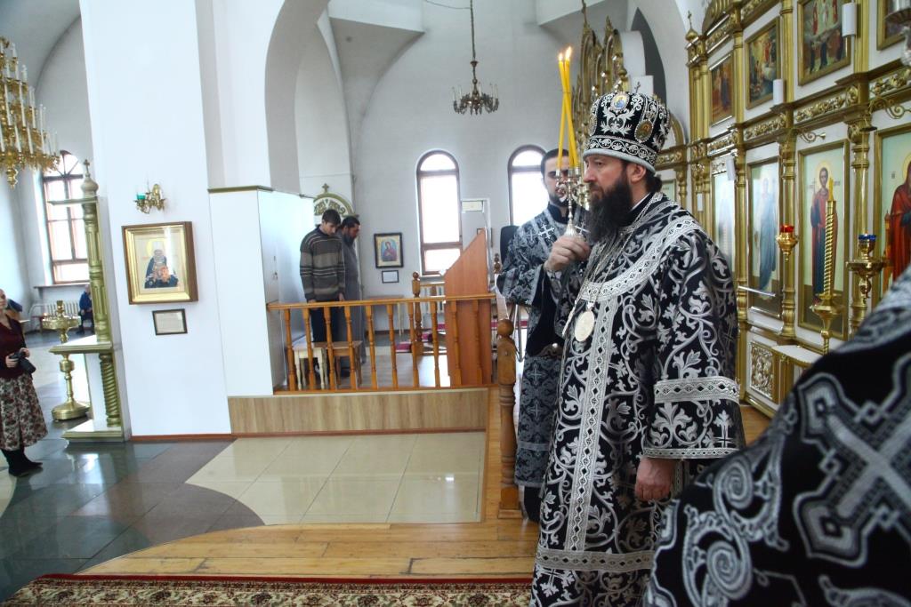 После проповеди Преосвященнейший Архипастырь призвал на собравшихся Божие благословение и пожелал прихожанам ревности о Господе в святые дни Страстной седмицы.