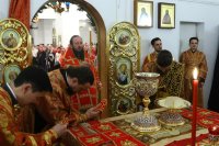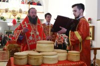 После заамвонной молитвы епископ Амфилохий освятил артосы, и обратился к народу Божию со словами пасхального приветствия, в котором поздравил всех с великим торжеством Воскресения Господа Бога и Спаса нашего Иисуса Христа. В завершение Богослужения Владыка епископ освятил пасхальную трапезу: крашеные яйца, творожные пасхи и куличи.